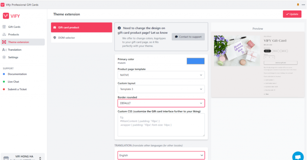Finally, hit UPDATE button on the top of the right to generate a new Gift card product.