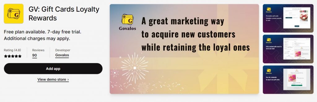 GV is a Shopify app that allows store owners to create and manage gift cards, loyalty programs, and rewards programs for their customers. With GV, store owners can customize gift cards and loyalty programs to match their brand, set up automated reward triggers, and track customer activity and rewards. The app also provides detailed analytics and reports to help store owners optimize their programs and improve customer engagement. Overall, GV is a powerful tool for increasing customer loyalty and generating more revenue for Shopify stores.
